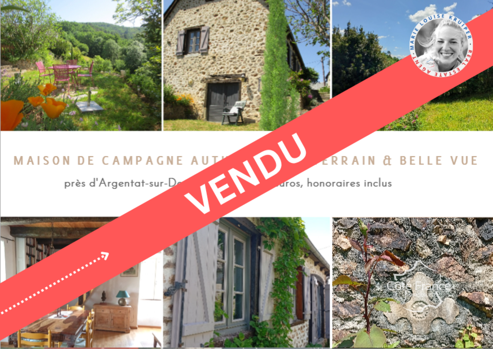 Cette annonce immobilière a été rédigée sous la responsabilité éditoriale de EI Marie Louise KRUIPER, agent immobilier indépendant pour la SARL Côté France (sans détention de fonds), agent immobilier inscrit au RSAC de Cahors sous le numéro 939590303, titulaire de la carte d'agent immobilier pour le compte de la société SARL Côté France.