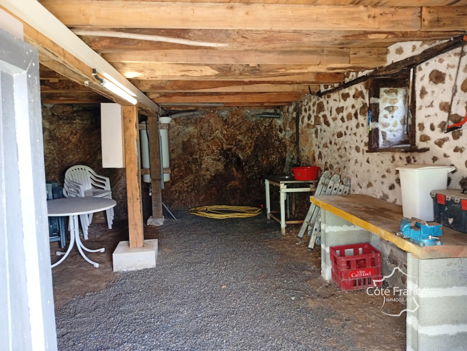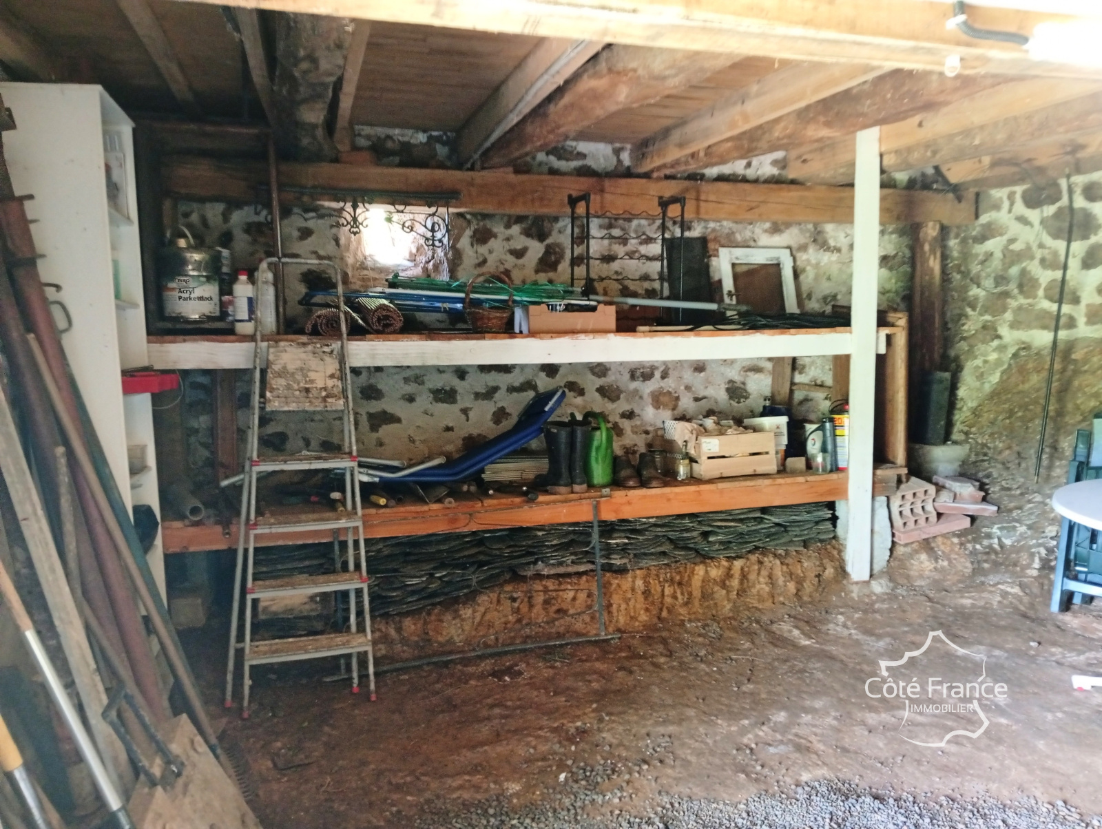 Un escalier de meunier mène au grenier. Cet espace est assez haut et isolé pour y aménager 1 ou 2 chambres supplémentaires. La maison dispose également d'une cave spacieuse, à laquelle on accède par des doubles portes depuis le jardin. Vous y trouverez le cumulus (150L) et un grand nombre d'espaces de rangement. Cet espace ayant un point d'eau permet d'y aménager une cuisine d'été ou un atelier.