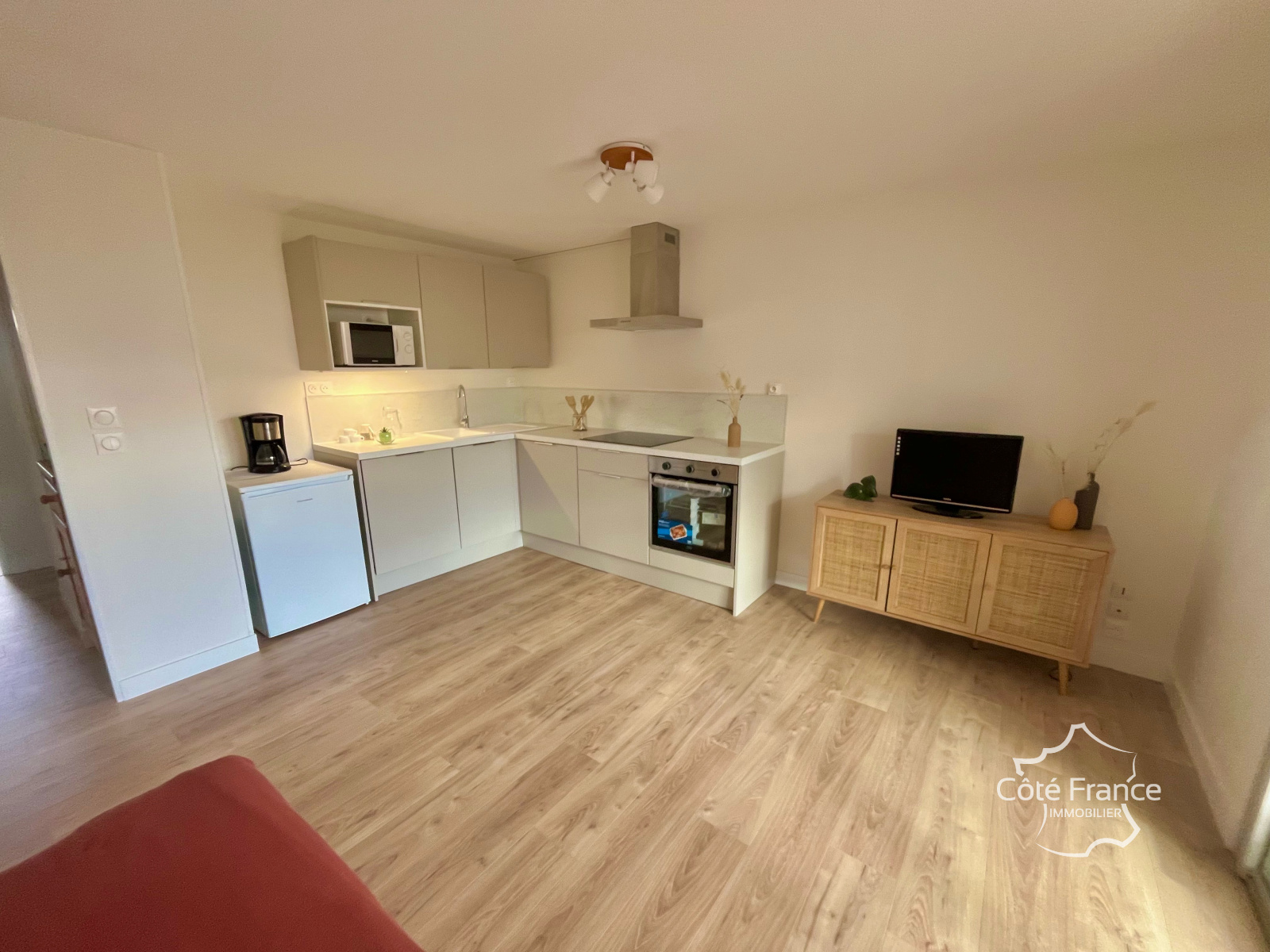 Grande pièce de vie très lumineuse, offrant de beaux volumes et un confort optimal. Cuisine ouverte entièrement équipée : lave-vaisselle, lave-linge, nombreux rangements, électroménager complet. Deux chambres, desservies par un couloir doté de rangements. Salle d’eau moderne, rénovée avec des matériaux de qualité.
