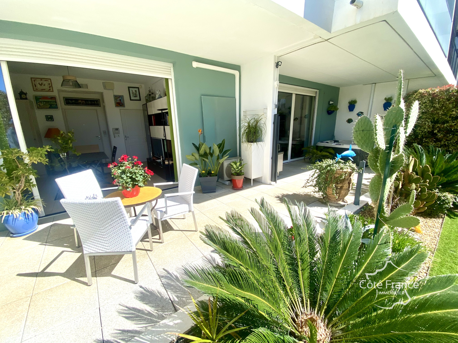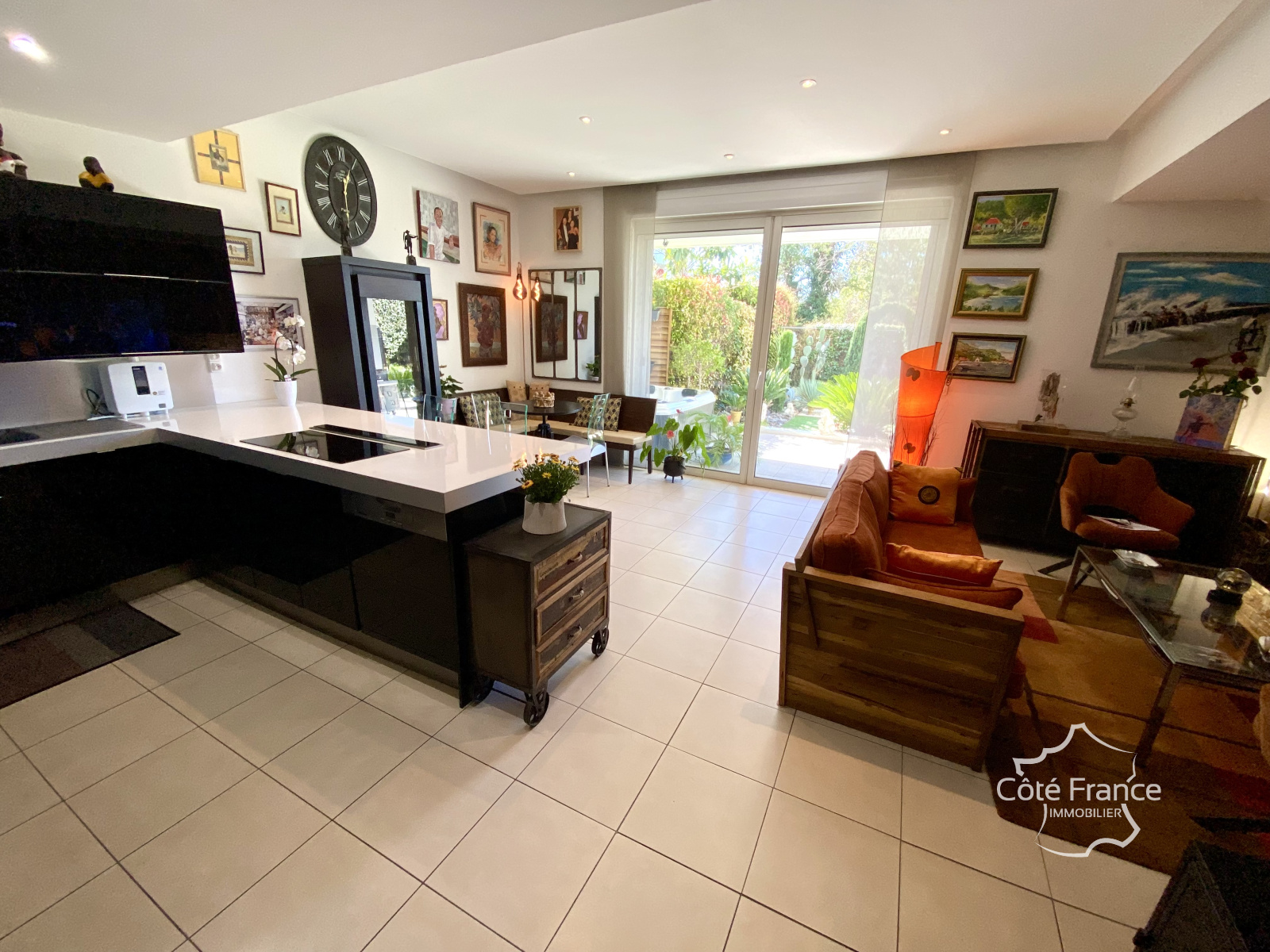 • Un séjour spacieux et lumineux avec cuisine ouverte et accès direct à l'extérieur.
