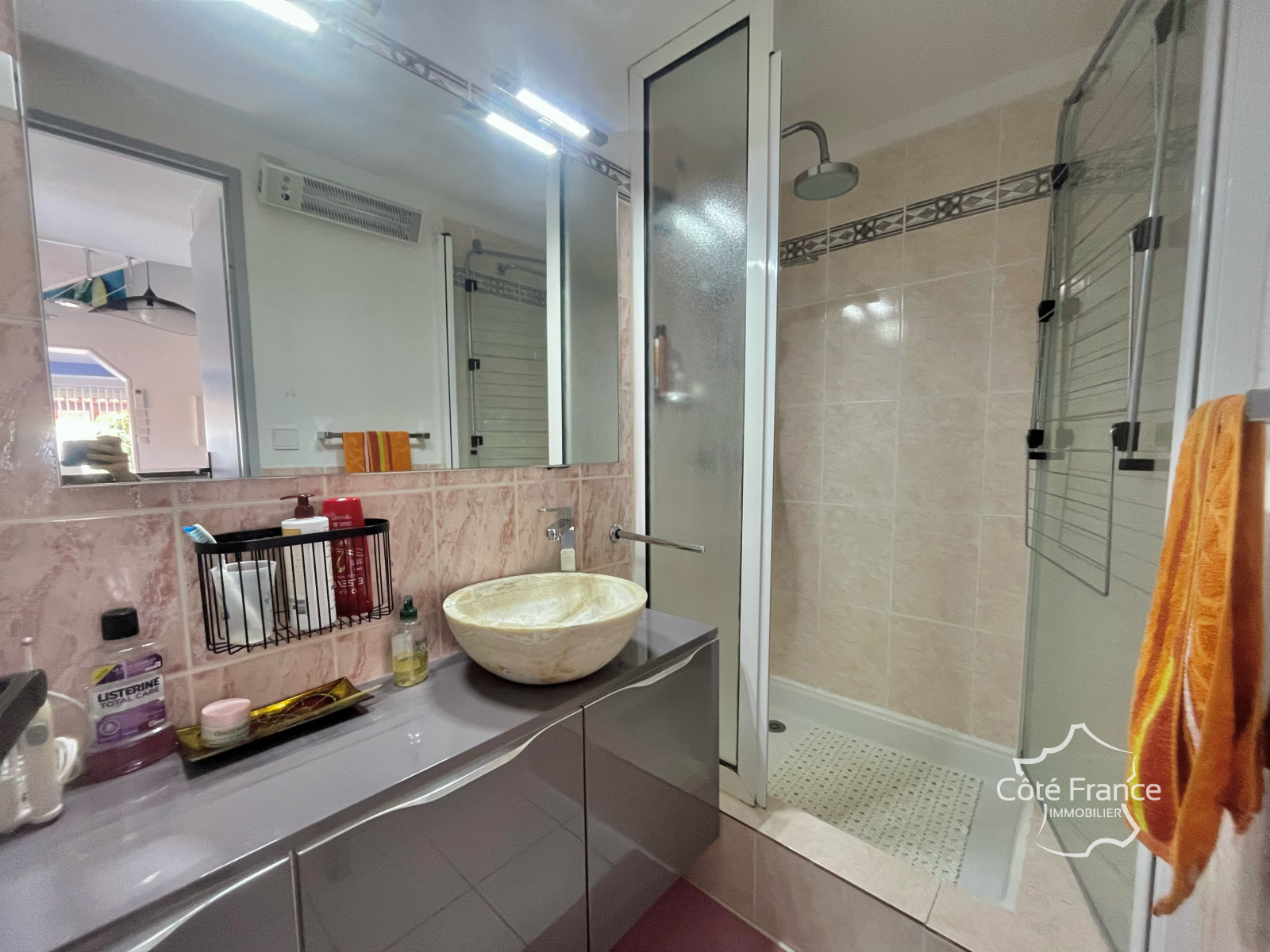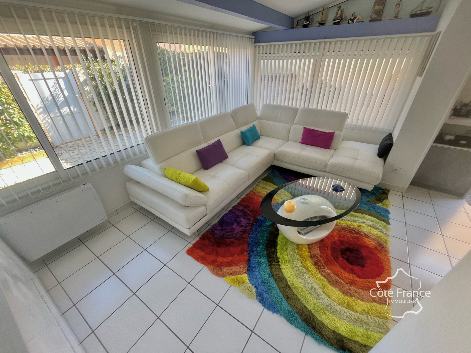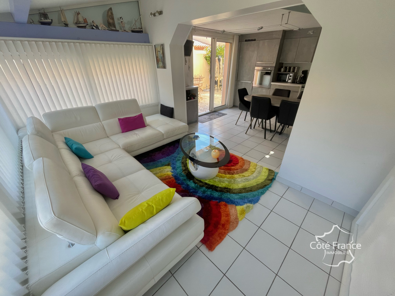 L’extérieur : un vrai atout La terrasse, soigneusement aménagée, offre deux espaces distincts : – un espace repas, avec possibilité de cuisine extérieure, protégé par un store banne électrique, – un espace détente plus intimiste, idéal pour se relaxer après la plage. Un cadre de vie rare au Cap, permettant de profiter pleinement du climat méditerranéen.