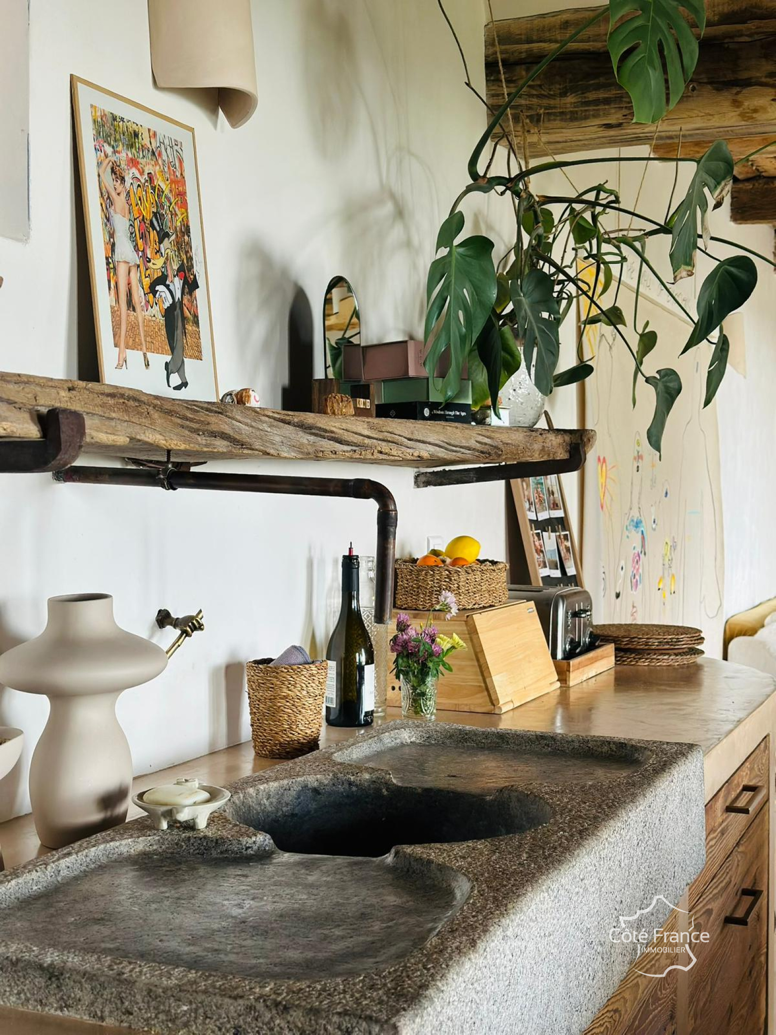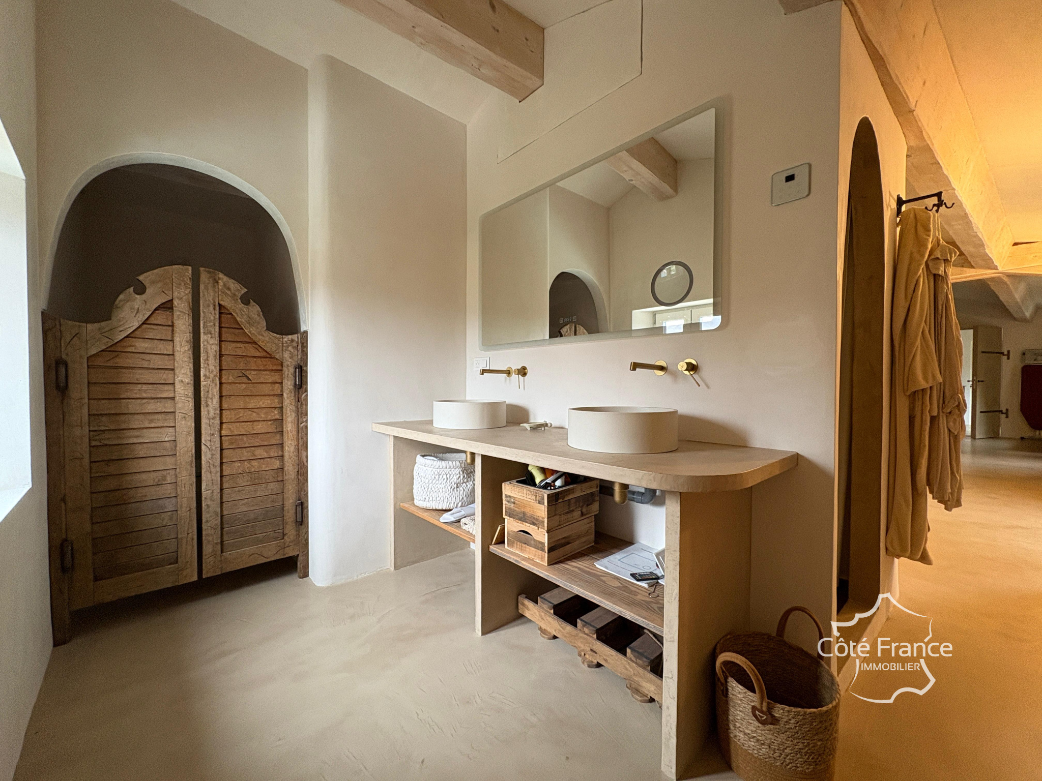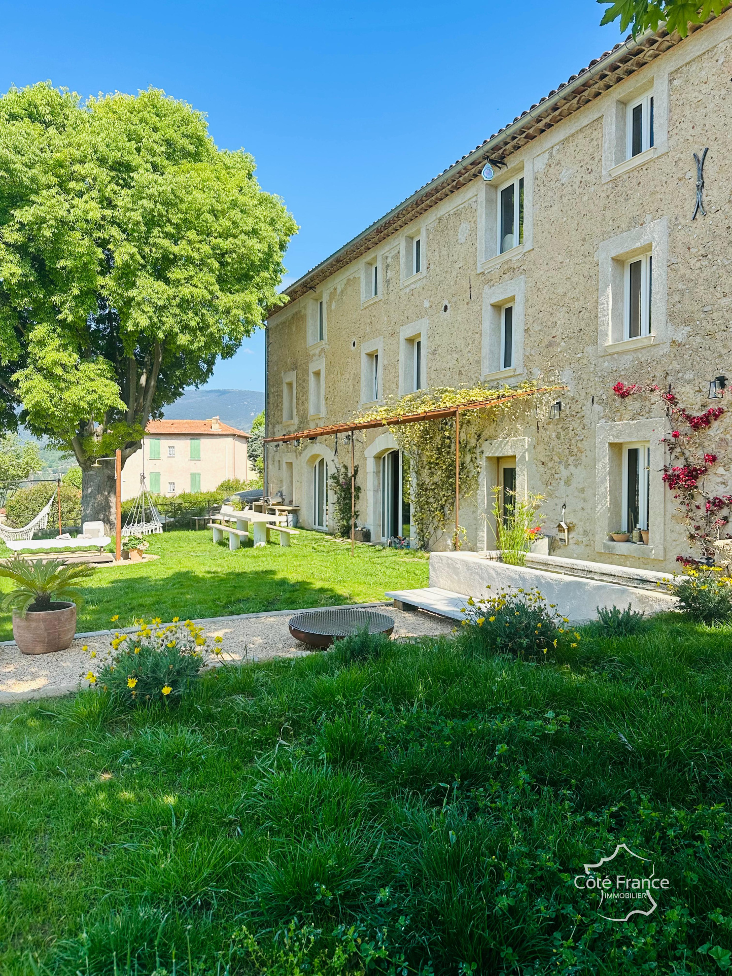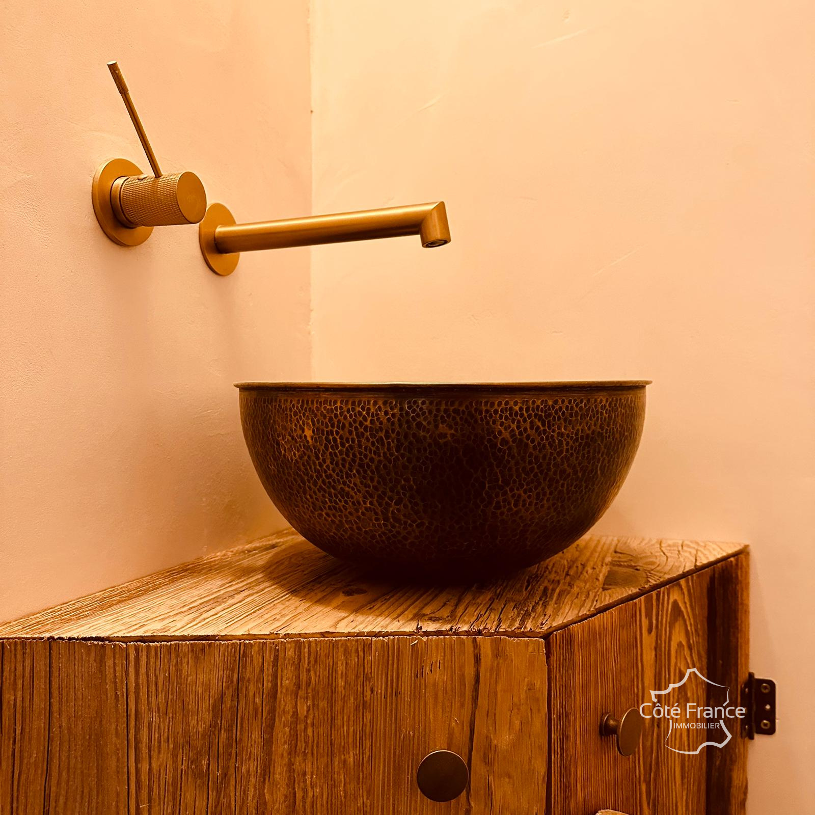 L’ancienne dépendance en pierre de près de 250 m² sur ce domaine a été transformée avec style pour devenir la demeure la plus raffinée du village. Les éléments anciens ont été soigneusement conservés, mais le luxe y est omniprésent !